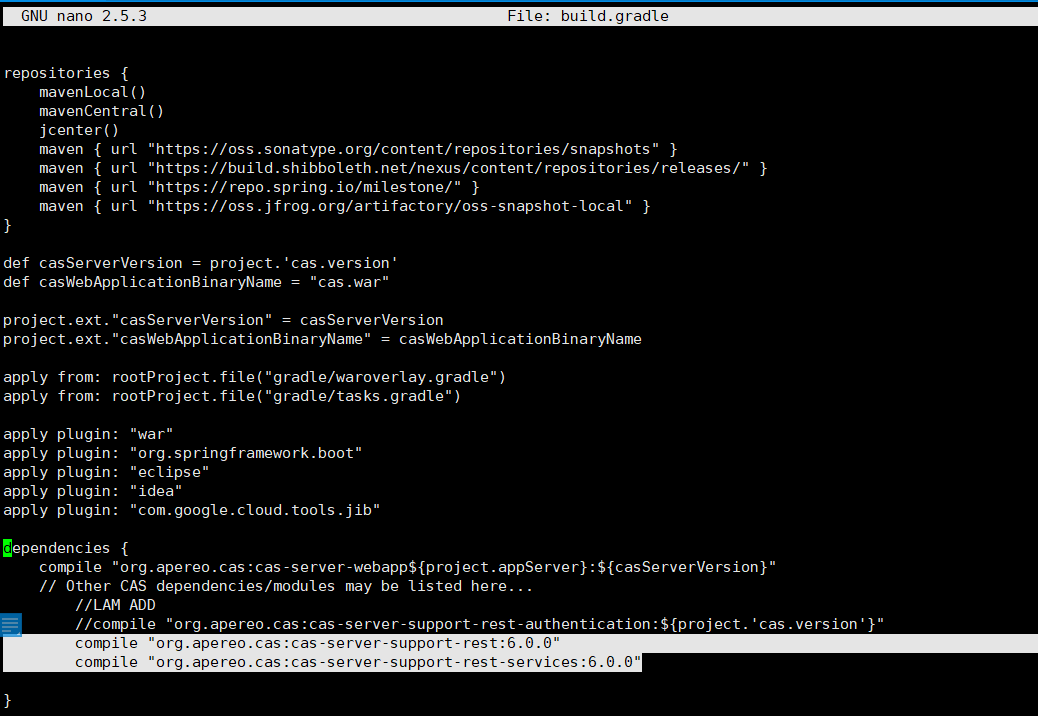 root@ubuntu16:~/cas-overlay-template-6.0# nano build.gradle