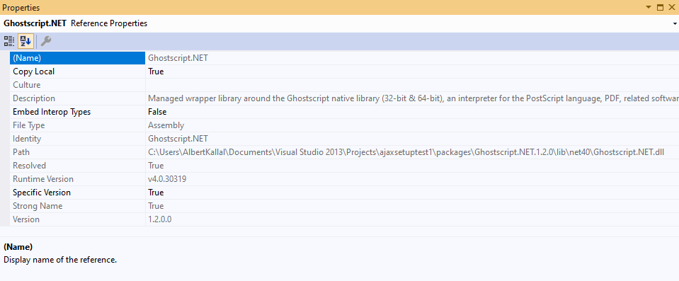 注意.dll位置的长路径名称。但是,最重要的是复制本地设置= true。这意味着在编译和构建过程中(正如前面提到的,可以清除bin文件夹),然后.dll将输出到bin文件夹中的最终构建。