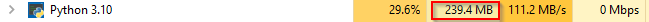 下面是一个示例,其中纯文本(Csv)的数据量大约为4.23GB。这些数据首先加载到DuckDB中,然后通过设置memory_limit='200MB'来运行一些SQL查询。下面的屏幕截图显示py脚本使用的最大记录内存。