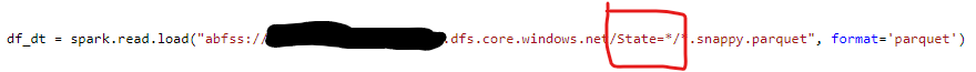 我在Azure Synapse笔记本中工作,从格式良好的文件夹路径读取文件到Dataframe,如下所示: