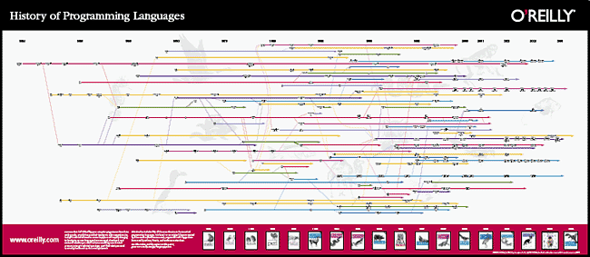 虽然有点切分,但是O‘’Reilly在埃里克·莱韦内斯的原作的基础上做了一张很棒的海报,在他们的历史中追溯了主要的编程语言。