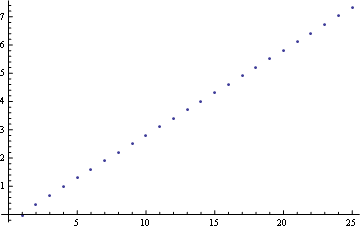 ListPlot@Table[Log[10, Log[10, Numerator[ a[i]]]], {i, 1, 25}]