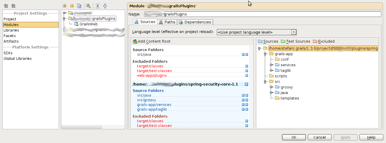 最近我一直在玩grails框架,我的想法和一切都进行得很好,直到我停止了春季安全核心grails插件。当使用grails编译/run/etc时,插件和项目工作得很好,但是intellij idea (9)不再能够“制作”项目,给了我一个错误: