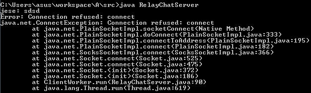 我在广播每个客户发送的信息方面有问题。服务器可以接收来自多个客户端的每条消息,但不能广播它。错误消息显示,拒绝连接的客户端: