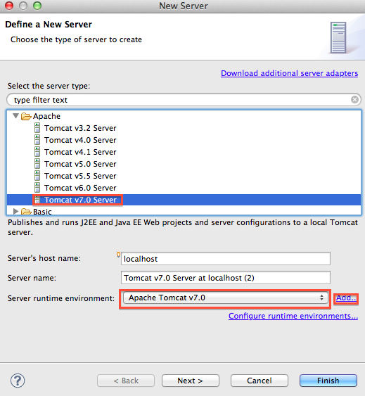 对话框中,我选择了Tomcat v7.0 Server