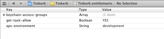8)在Tinker6.应享权利文件中,我得到了以下内容(根据网上的几个不同的帖子,我收集到的内容是正确的,但我无法从苹果自己那里找到任何明确的信息):