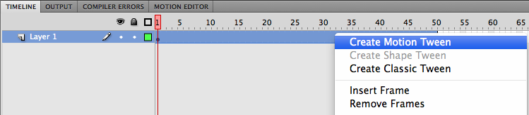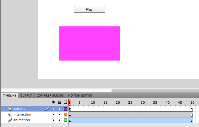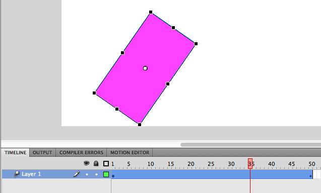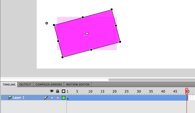 有谁能告诉我如何在Flash CS5中实现对象之间的旋转呢?我有一个图像,我设置了注册点,我希望它沿着注册点旋转。我在大约50帧的时候创建了一个关键帧,将物体旋转180度,然后点击“”。然后,我使用AS3首先用“mc.stop()”来停止"mc.stop()",然后当我单击一个按钮时,用"mc.play()“开始播放。然而,根本没有动画。它所做的就是对49帧不做任何操作,然后在帧50上闪到旋转1/24秒.??旋转吐温是否与过渡吐温不同(从A点移动到B点)?