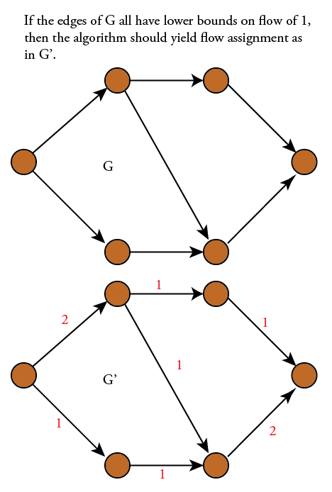 我的意思是,如果所有的成本和下限都是1,如上面所示.然后,我们正在寻找一种流,它覆盖所有边界,遵守流规则,并且不会在从s到t的任何路径中推动过多的流。这感觉就好像不需要对我使用LP求解器,而且维基百科关于最小成本流的文章确实指出,“如果能力约束被删除,问题就会减少到最短路径问题”,但我认为他们在谈论的是下界为零的情况。