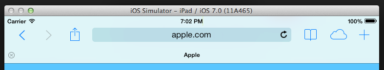 如何创建与iOS7顶部状态栏合并的工具栏,如Safari应用程序中的工具栏?使用UINavigationBar可以很容易地实现这一点,但是需要一个UIToolbar。