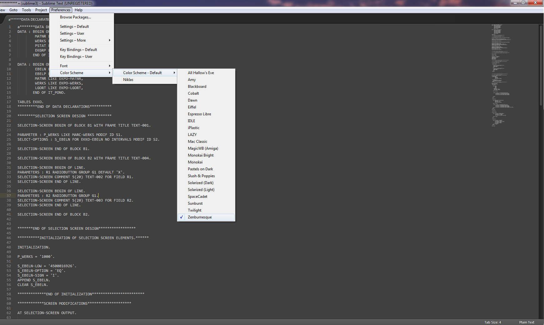 我正在寻找一个色彩方案在崇高的文本3为ABAP突出语法。