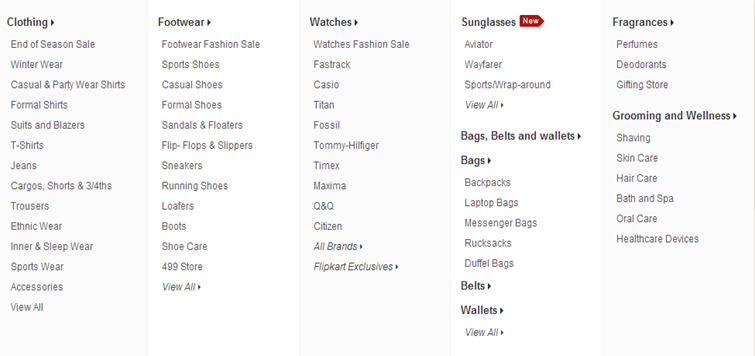 至于Flipkart,我认为他们有一个CMS,他们分别管理每一列。因为生成的链接数量并不相等,所以这种灵活性很难通过编码来管理。