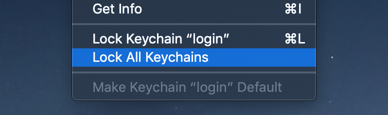 打开密钥链访问,然后在文件菜单中选择锁定所有密钥链。