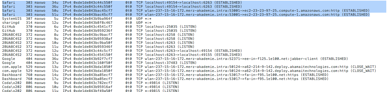 从这个列表中,我希望过滤(例如) Safari中的所有进程。所以我会得到我在图片上标上蓝色的线条。