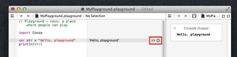 我很高兴地在Swift/Xcode 6游乐场的助理编辑器(请参阅println)中使用控制台输出,直到我决定尝试单击X关闭控制台输出。