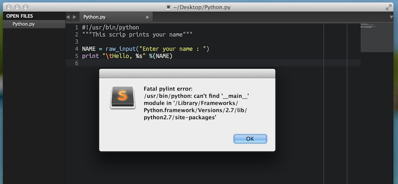 我遇到了类似于互联网上的you.After检查这样的问题,我发现您首先需要在python中安装pylint。(Os windows,python3.5,sunlime 3)
