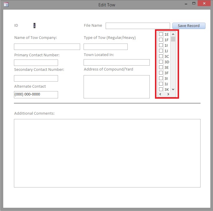至于它的价值,我认为我的表单行源的早期版本包括了字段'area‘和'area.value’。这样,表单记录计数就会反映所选列表框项的总数,而不是表“res_Tow”中的行数。