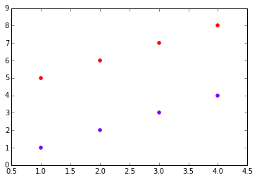 plt.show()这将从n颜色映射创建rainbow颜色,并使用scatter绘制相应颜色中的点。您可能希望切换到不同的颜色地图,甚至手动选择颜色。
