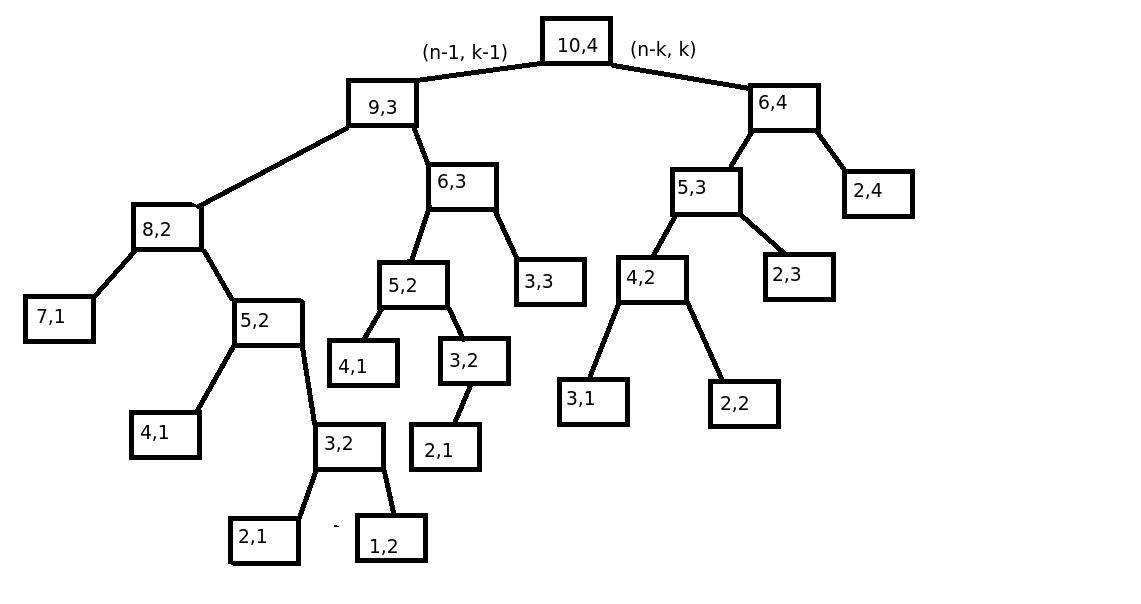 # the rest of the sum will be n - i among k - 1 elements with