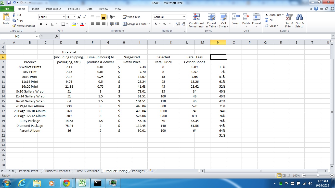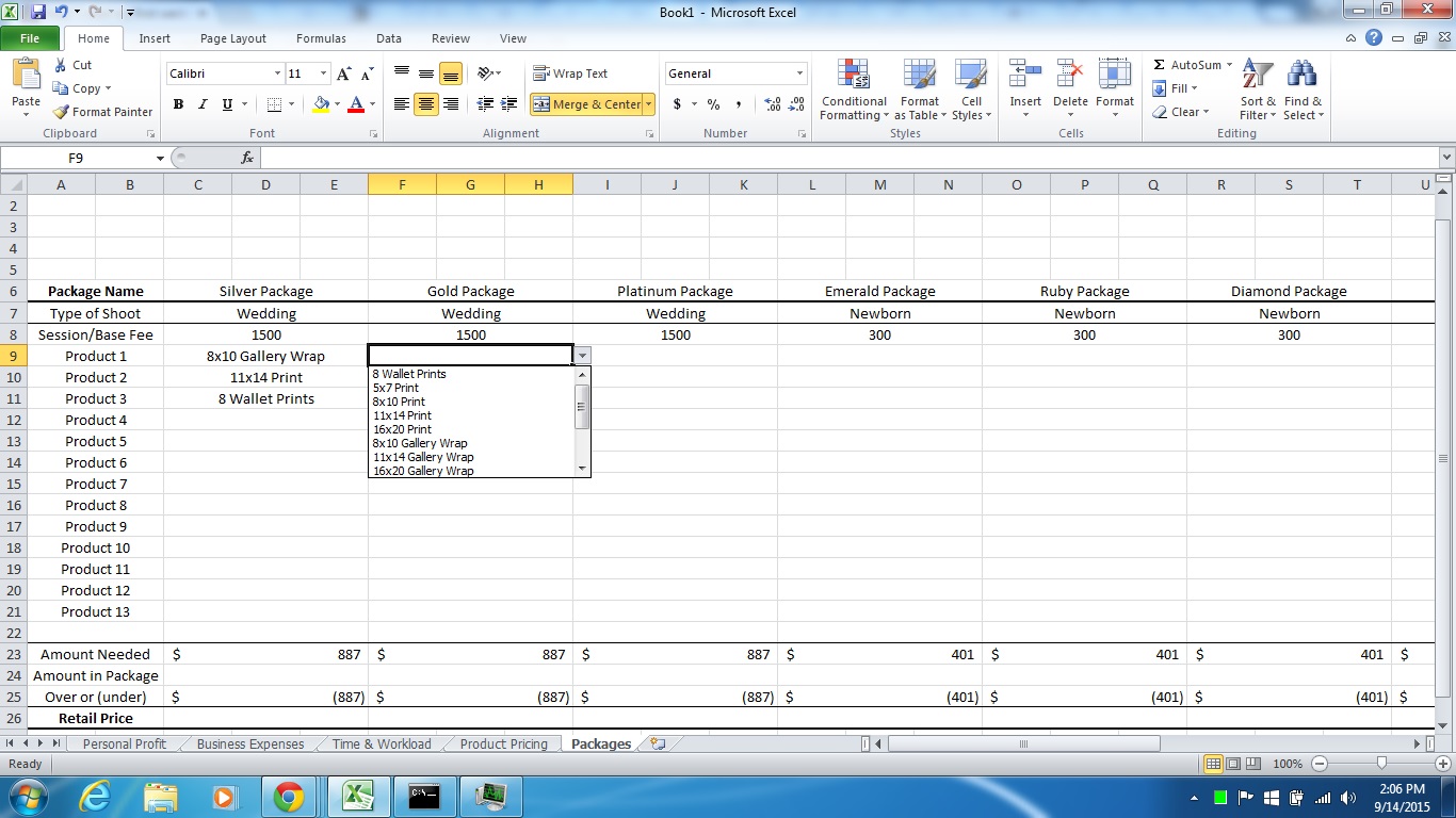 因此,在这些图片中,单元格C24应该等于$1550.15,这将是单元格‘Package’!C8、'Product‘!L8、'Product’!L11和L13的总和。
