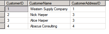 我有两张桌子:顾客(CustomerID (PK),CustomerName,CustomerAddressID(FK))地址(AddressID (PK),街道,城市,州,ZipCode)