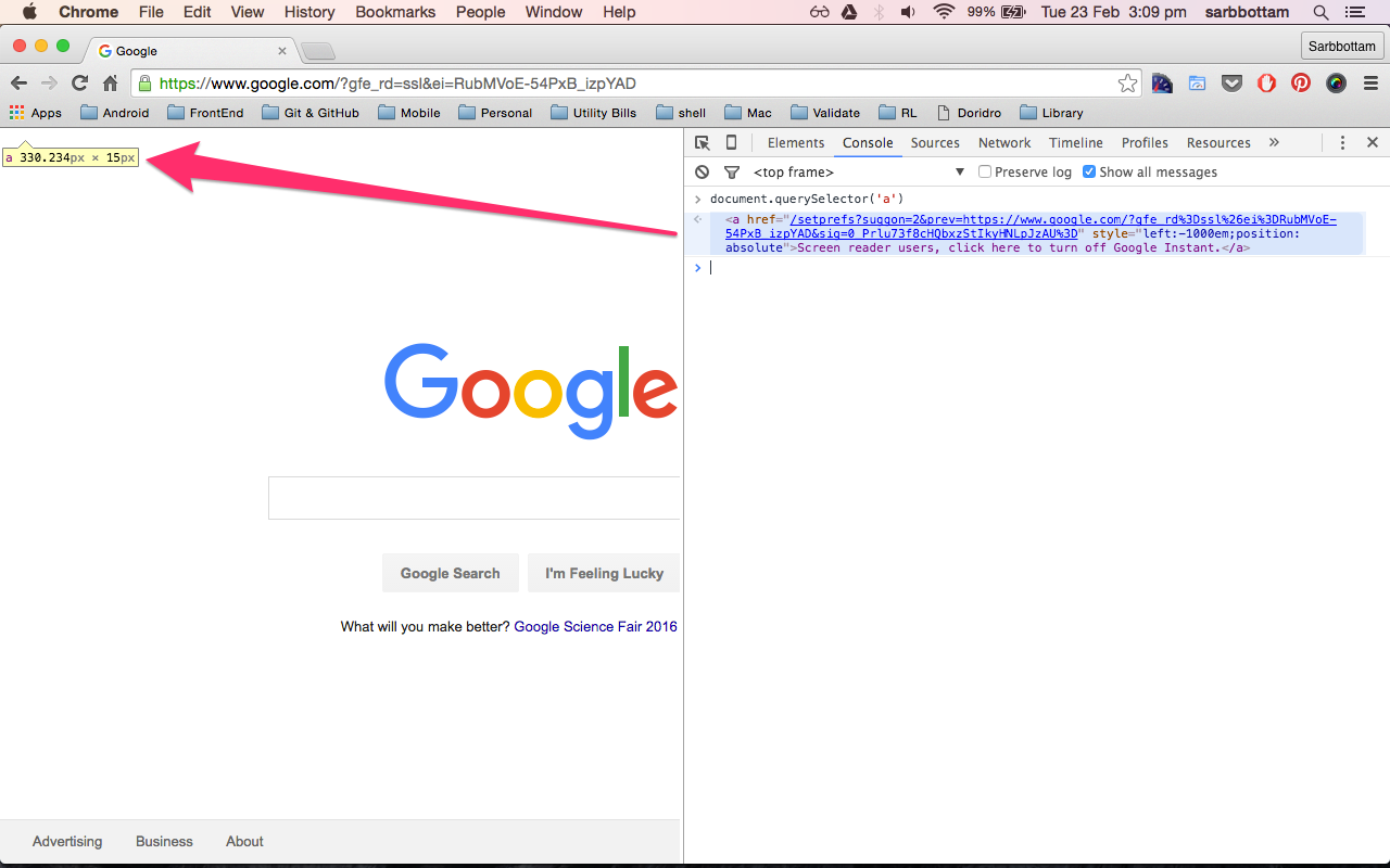 当我执行document.querySelector('a')