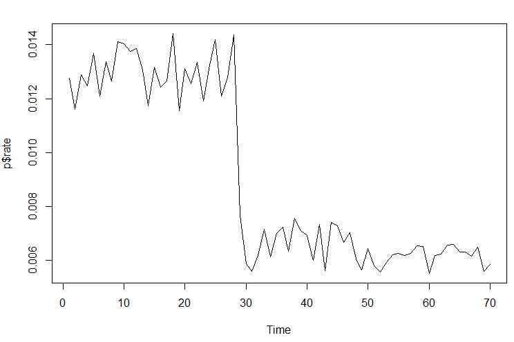 p.cpt=cpt.mean(p$Rate,method="AMOC")