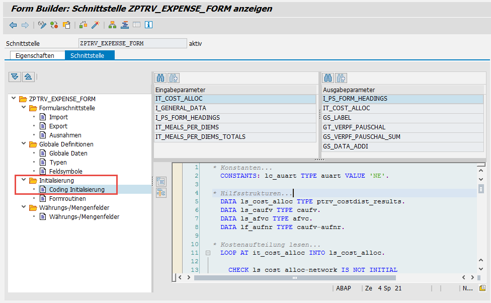 在transaction SFP中,您可以编辑adobeform。所以在这个界面中有一个叫做初始化的部分.在那里,您可以为adobeform实现您的代码。