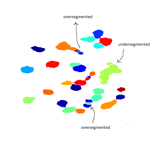 我已经完成了分水岭分割的图片上的一组细胞。似乎有许多细胞簇还没有被分割好,或者根本没有被分割。也有一些单细胞被过度分割。我可以用什么方法来合并过度分割的单细胞并进一步分割未分割的细胞簇?