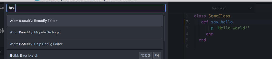 我正试着从崇高的转变为原子。我安装原子美化是因为我试图获得与ST的BeautifyRuby包相同的出色的美化功能。