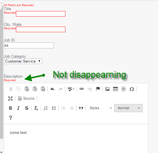 enters:一旦用户在ckeditor中输入一些文本,验证错误消息就会消失。