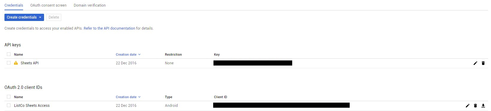 at com.google.api.client.googleapis.extensions.android.gms.auth.GoogleAccountCredential$RequestHandler.intercept(GoogleAccountCredential.java:294)这就是我的Google凭证的样子: