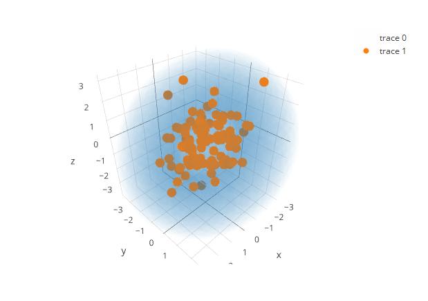 ,它可以返回一个椭球,覆盖95%的三维点。然后可以在rgl::plot3d