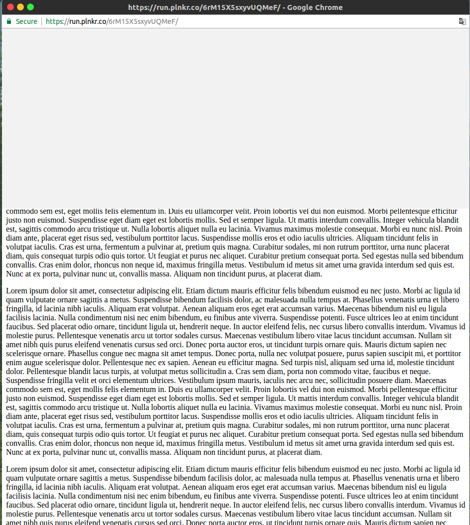 我已经创建了包含所有代码的这个柱塞。如果您在内联演示窗口内进行测试,则不会出现此问题,您需要在单独的窗口中单击Preview (代码演示中的蓝色按钮顶部)。
