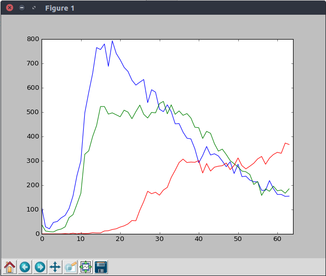 hist_full = opencv.calcHist([chan], [0], mask, [bin_amount], [0, bin_amount])
