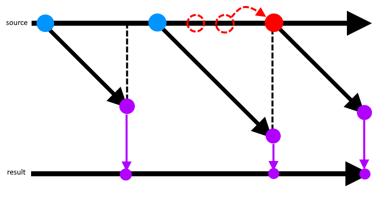 请注意,当第一个内部可观测性完成时,来自源的最新发射是可以用i === 2