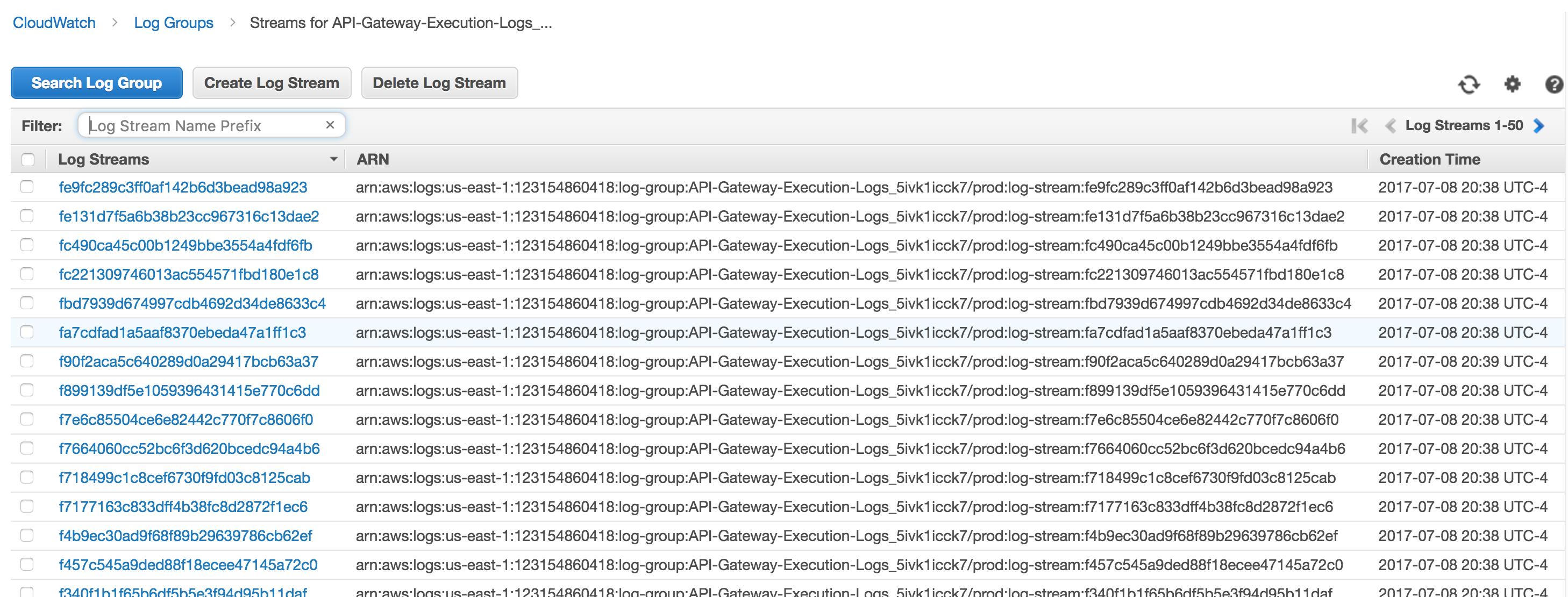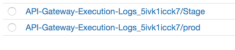 在这样做之后,我在CloudWatch中看到了这两个网关-查找日志:
