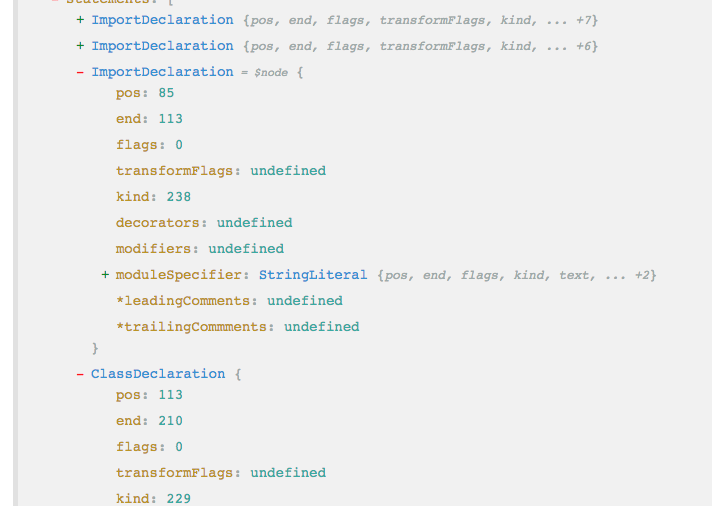 我建议使用我的ast查看器(ts-ast-viewer),因为它专门用于TypeScript编译器API,并将向您展示这些信息。