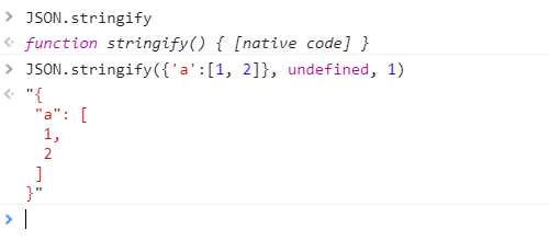 JSON.stringify({'a':[1, 2]}, undefined, 1)意外行为