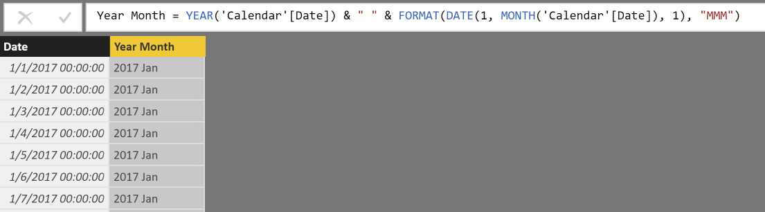 FORMAT(DATE(1, MONTH('Calendar'[Date]), 1), "MMM")