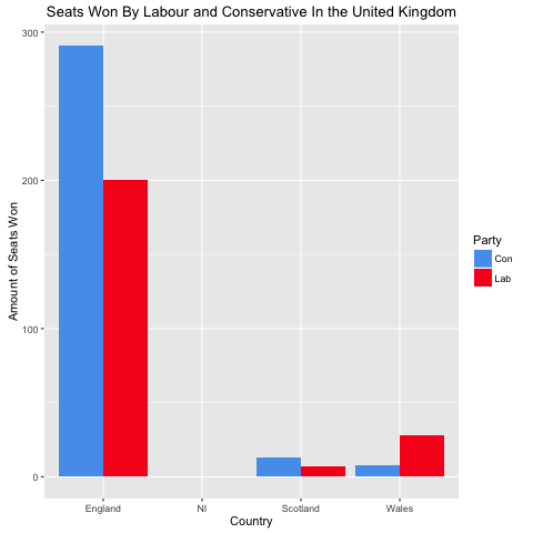 ggtitle("Seats Won By Labour and Conservative In the United Kingdom") +