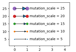 ax.text(1.2,i,"mutation_scale = {}".format(i),