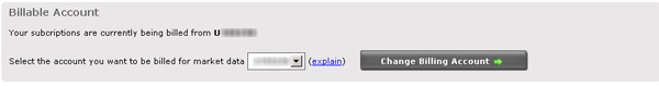 选择要为市场数据计费的帐户,然后单击“更改记帐帐户”。从下一个计费周期开始,您的市场数据订阅将被计费到您选择的帐户。