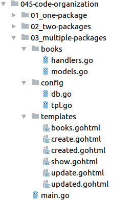 我猜,庞大而复杂的Golang项目并没有把它们的整个代码库放在一个文件中,所以我只是在寻找一种很好的方法来将一个项目构建成多个文件,就像它们维护项目时所做的那样。