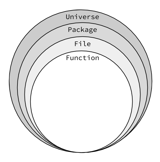 FYI: Go没有全球范围。你可以在亚历克斯·爱德华兹代码组织条款上读到更多关于它的信息。