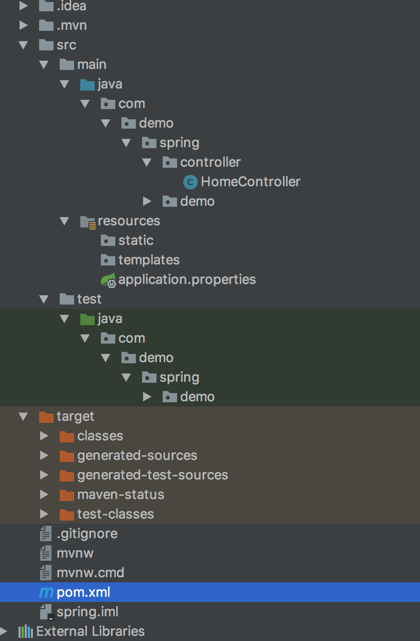 到目前为止,我所做的唯一一件事就是创建一个名为“控制器”的包,其中包含一个"HomeController.java“文件,代码如下: