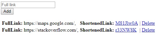 作为一个家庭作业,我必须做一个简单的网址简写,在那里我可以添加完整的链接到列表,这是由Hashids.net库处理,我得到一个网址的短版本。