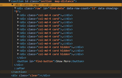 $('#find-data').children('.hidden').first().removeClass('hidden');https://stackoverflow.com/questions/50081586