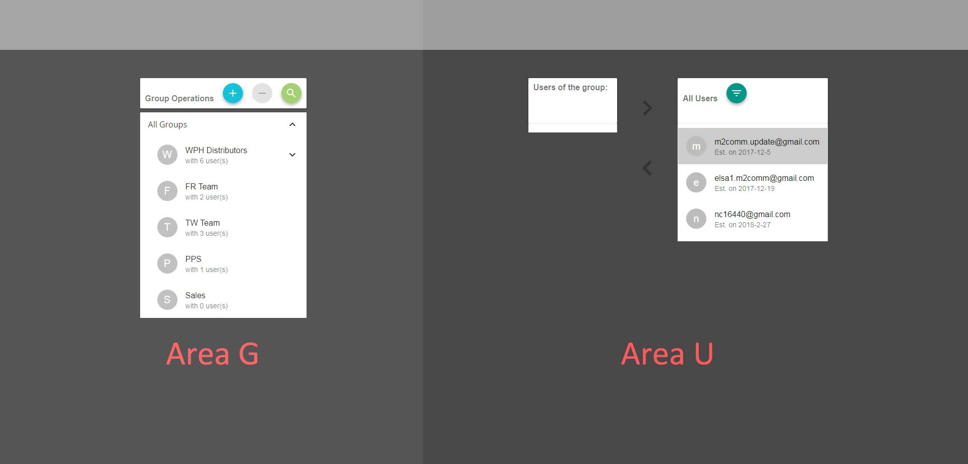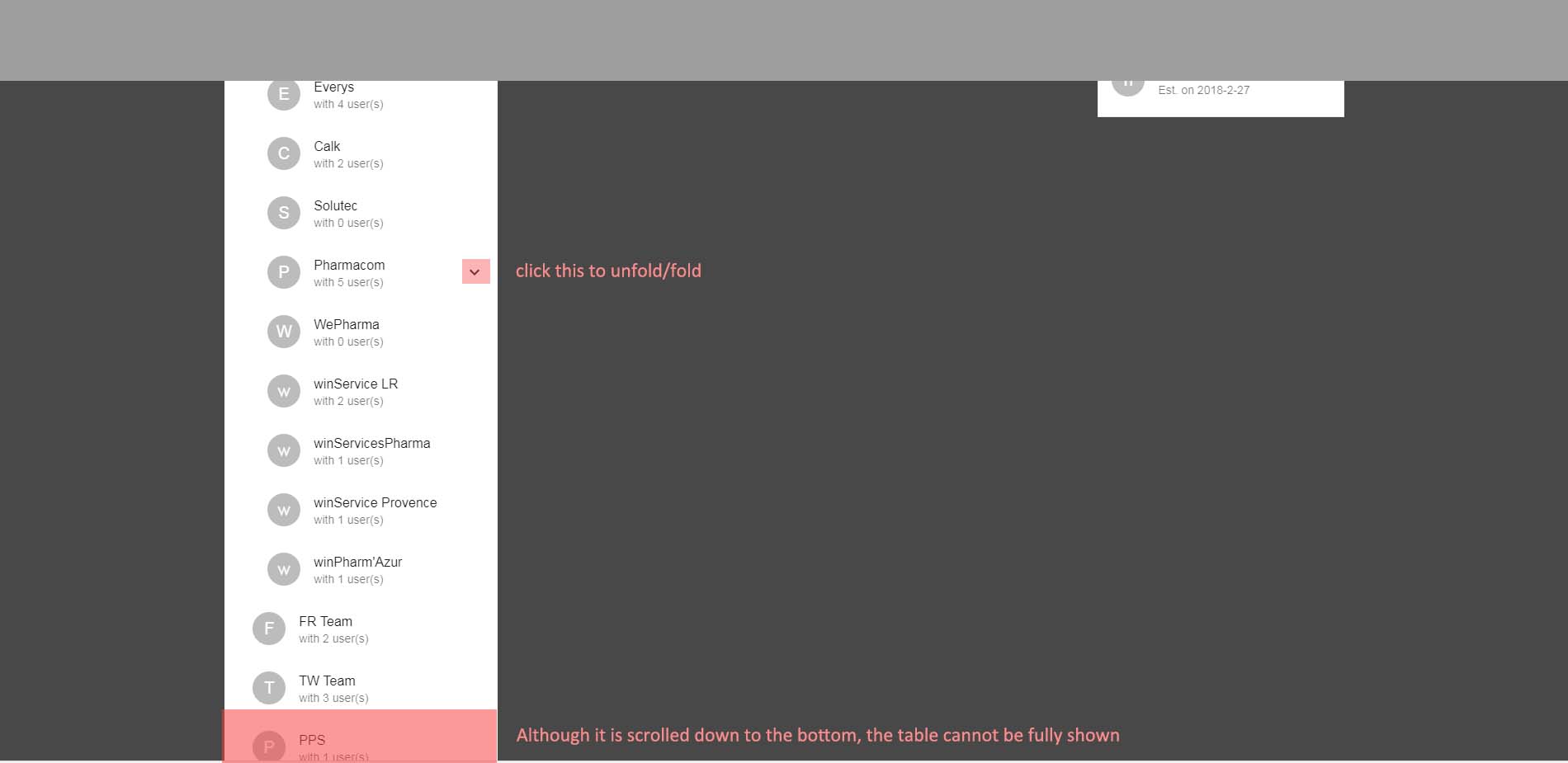 我使用function来创建一个函数,在页面上,用户可以选择一个组,当一个组被选中时(在区域G中),它的成员可以立即显示在‘用户组’中(在区域U中)。我的问题是,使用这种布局,当在G区域展开表时,即使滚动到底部,表也不能完全显示。