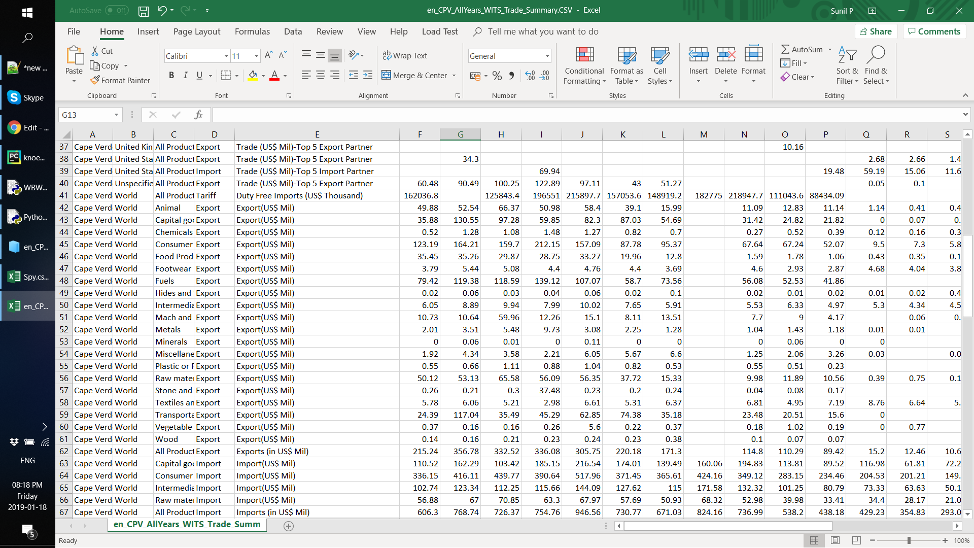 从数据中加载一个示例时,我注意到“指示器”列的值并不都是小写--即'Export(US$ Mil)'