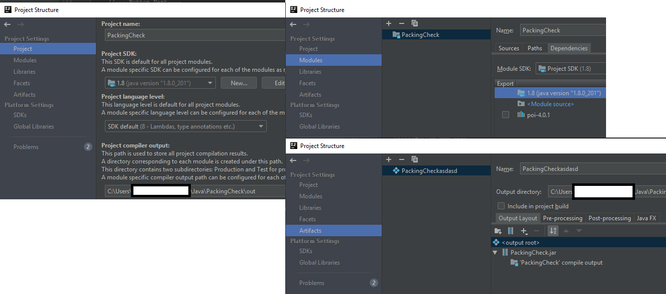 使用IntelliJ Idea运行jar文件时,我遇到了一个问题。项目使用的是JAVA 1.8.0_201。当创建JAR时,我构建工件,在运行JAR时得到错误: